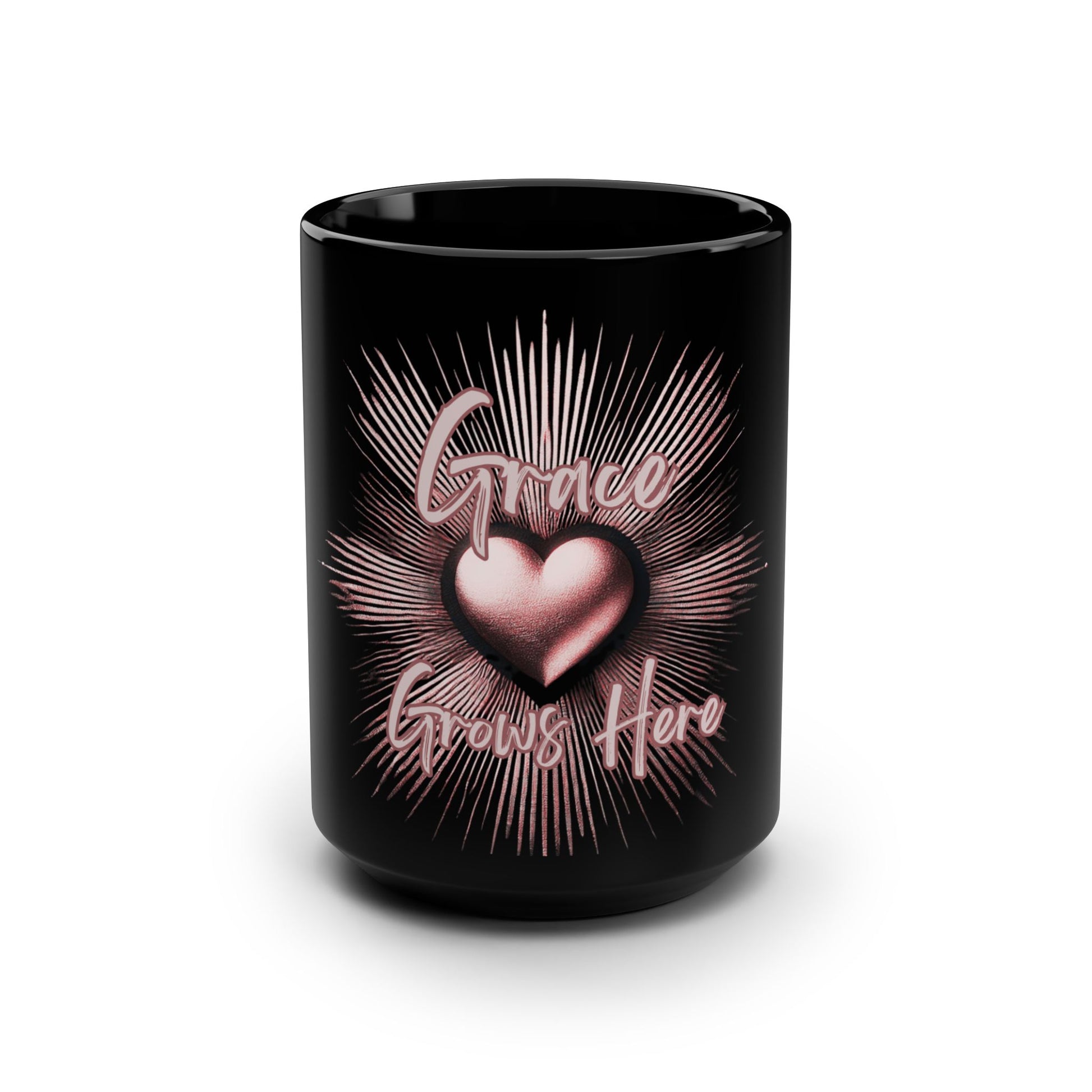 Grace Grows Here – 15oz Inspirational Black Mug | Love in Bloom Collection | Joyous Life Journals