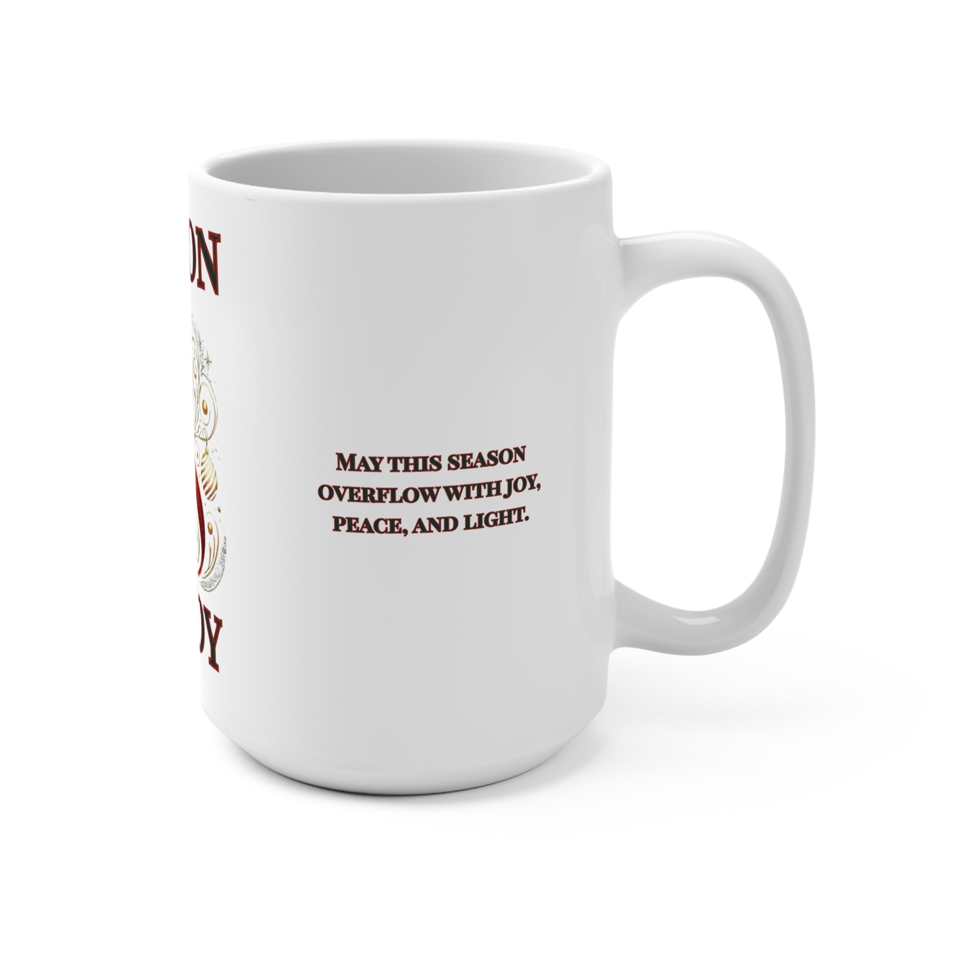 15oz ceramic mug with a festive Joyful Season design.