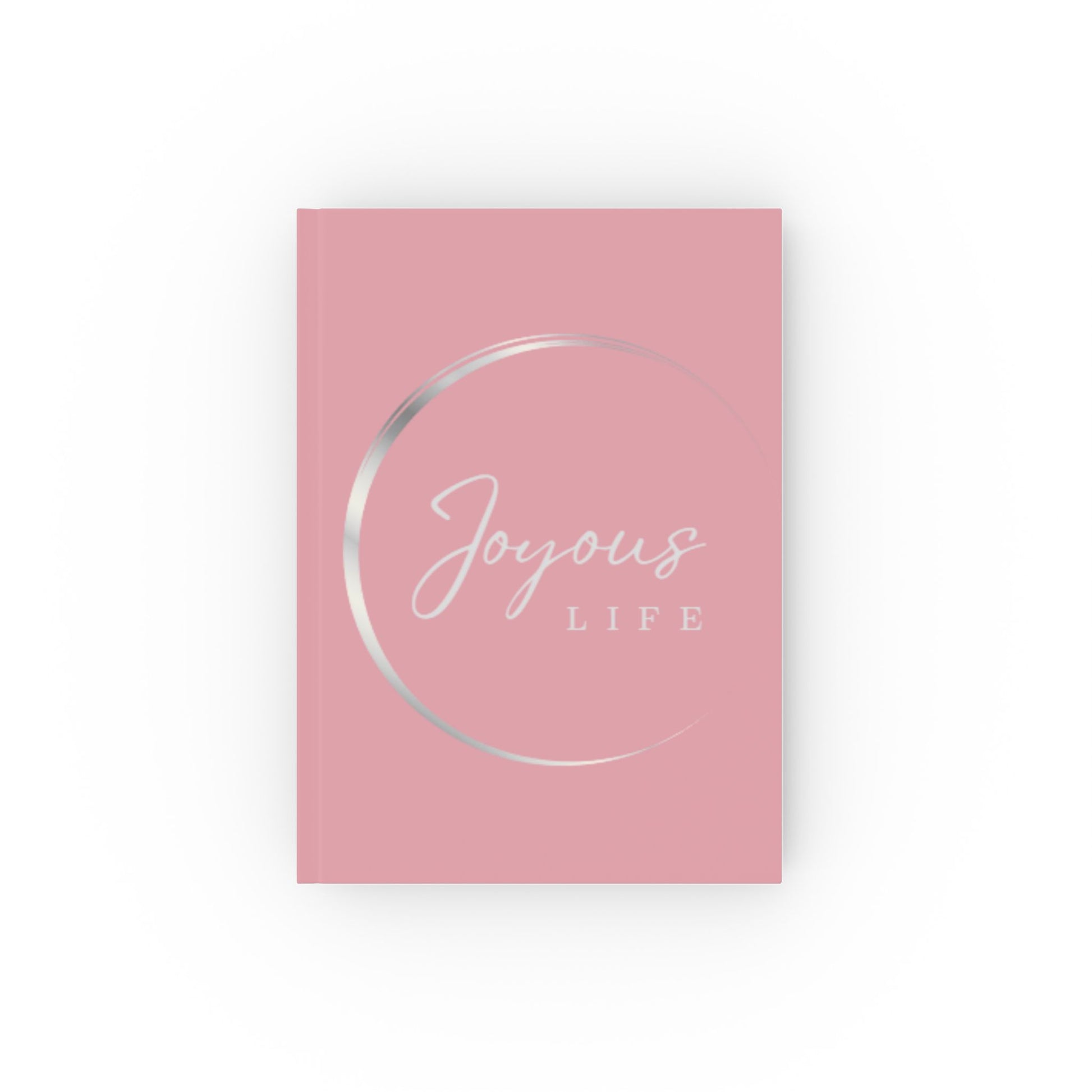 Durable hard-backed cover with soft pink Joyous Life branding.