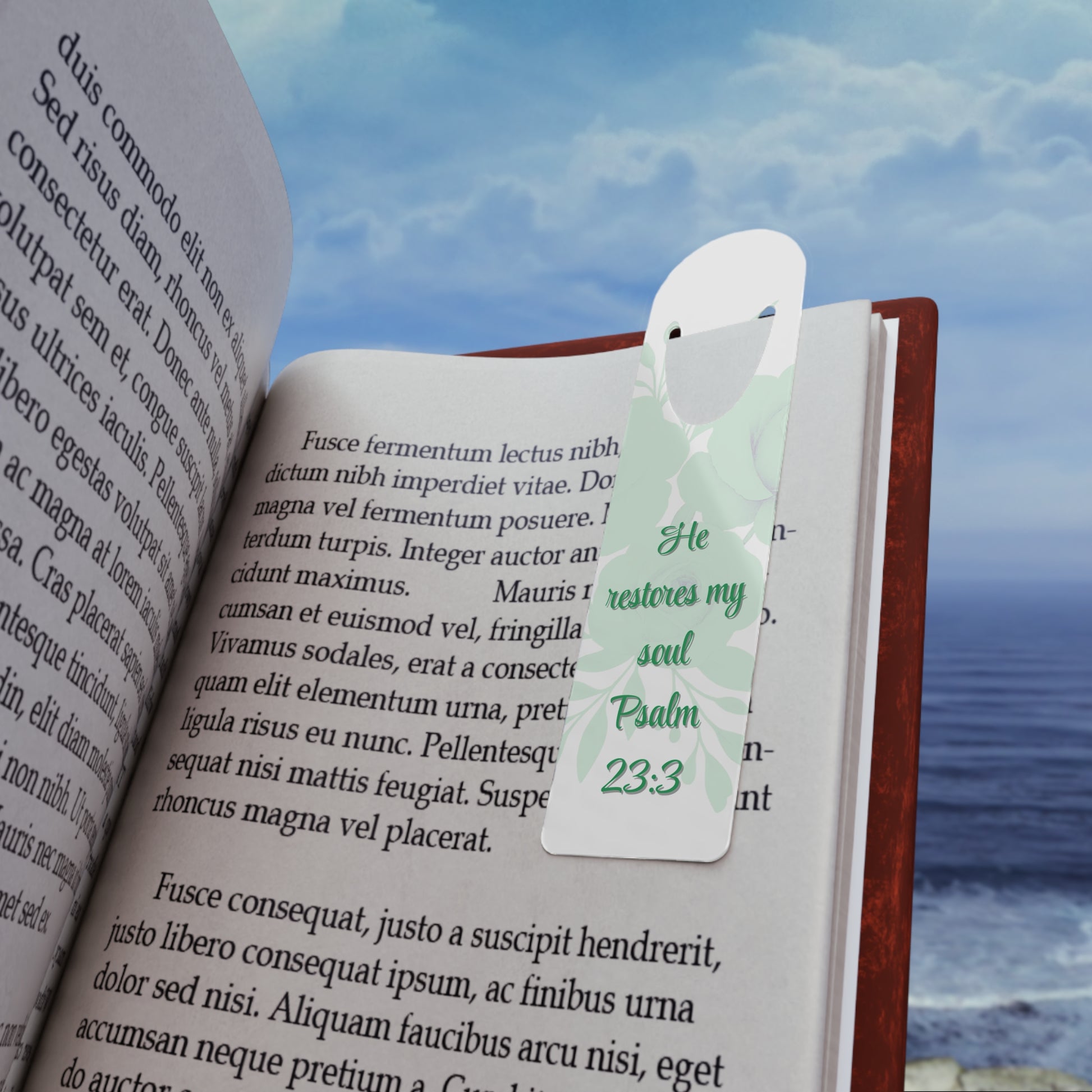 Find encouragement in every page you turn with the Psalm 23 Bookmark – He Restores My Soul. 🌿 Inspired by Psalm 23:3, this bookmark is a gentle reminder of God’s power to renew, refresh, and restore. Crafted from lightweight yet durable aluminum, it features a smooth surface, rounded edges, and a vibrant scripture design that’s both practical and inspirational.